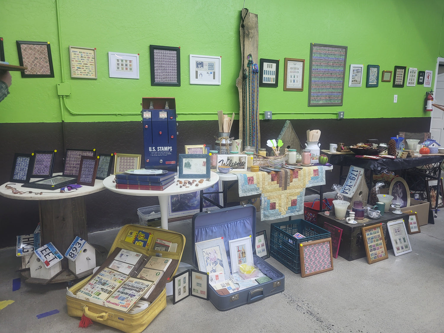 Hand Made Wooden Spoon's! These are the best! Rub a little mineral and it will last forever! Or buy one of Sam's handmade candles! You can already smell the scents as you walk in to the room :) Like stamps? He has the biggest box of stamps ever to sort through!